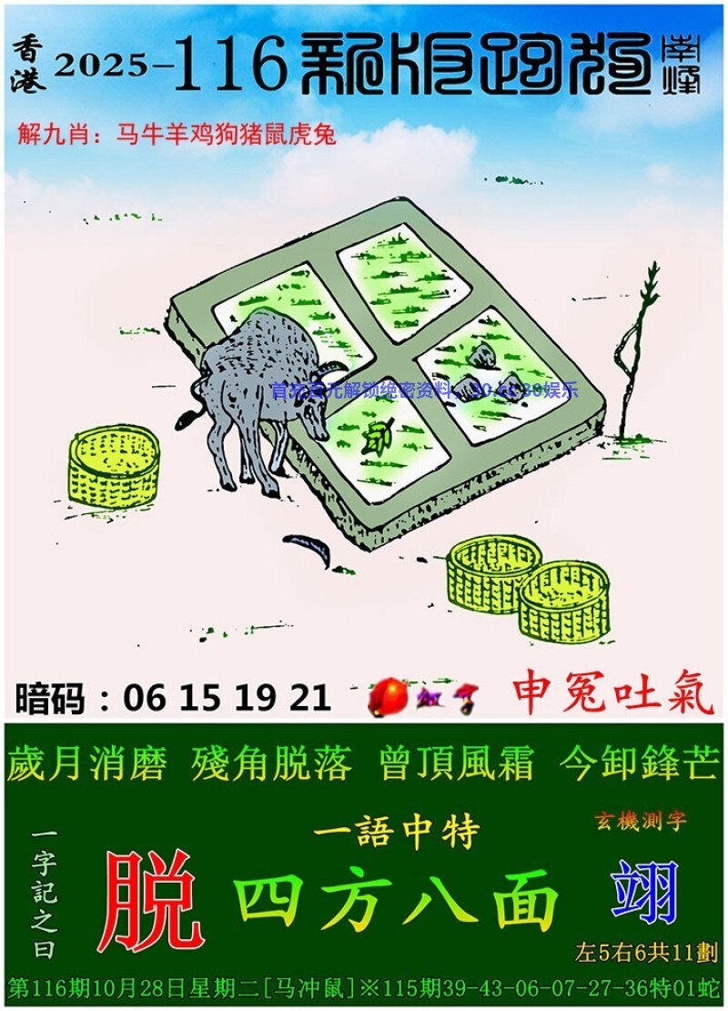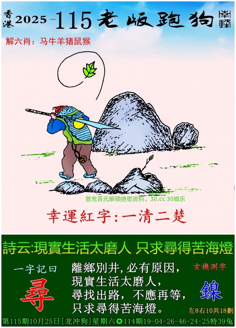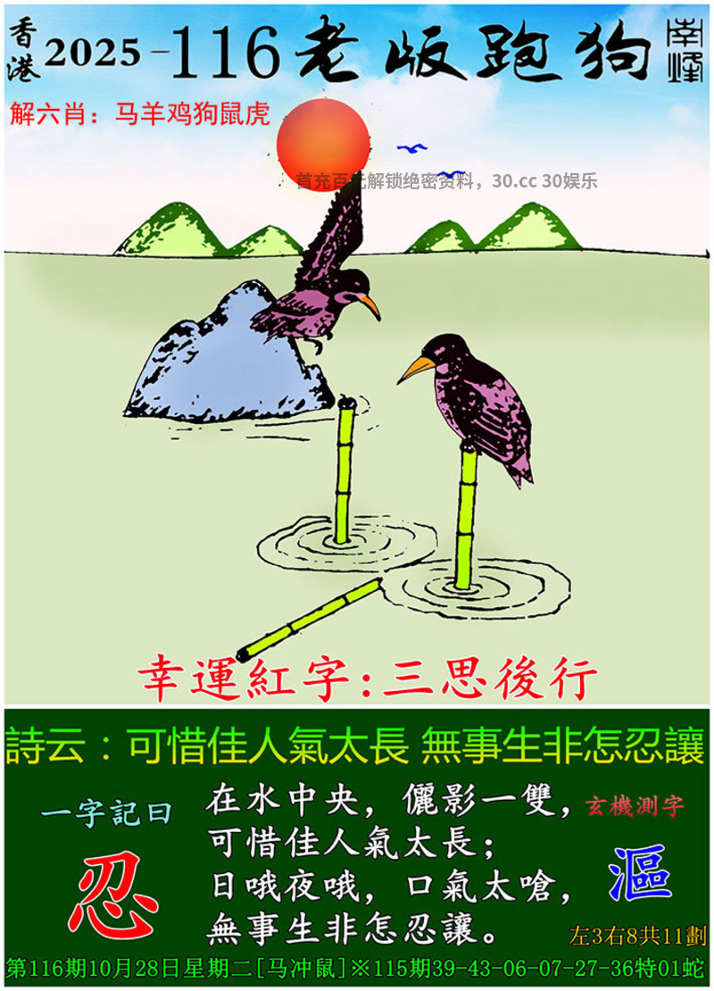 | 116期:马会传真解析: 今期生肖看三五,马马虎虎来骗人 牛狗鸡马本期有,还有三二四零中 四六等于二十四,好码就从中间出 三一四二是何肖,不管三七二十一 乐在其中 解析:今期生肖看三五,马马虎虎来骗人,35羊,明肖马虎,牛狗鸡马本期有,还有三二四零中,明肖牛狗鸡马,四六等于二十四,好码就从中间出,24马,三一四二是何肖,不管三七二十一,31猪,42鼠,21鸡。 综合:羊马虎牛狗鸡猪鼠猴 |